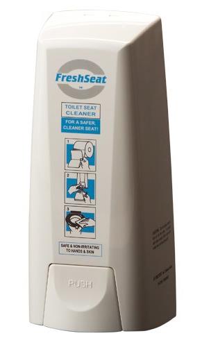 Introducing FreshSeat... the world's first toilet seat cleaner. Just hold some tissue under the dispenser, press